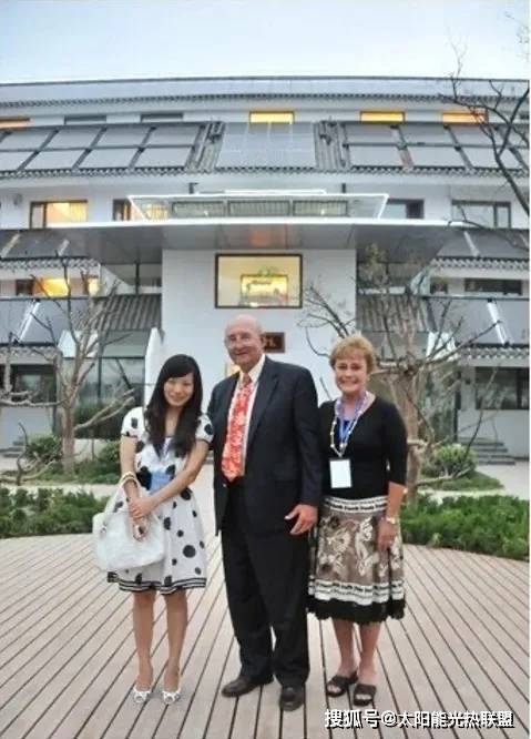 图:杜凤丽和Douglas夫妇在中国太阳谷Douglas太阳能别墅前合影
